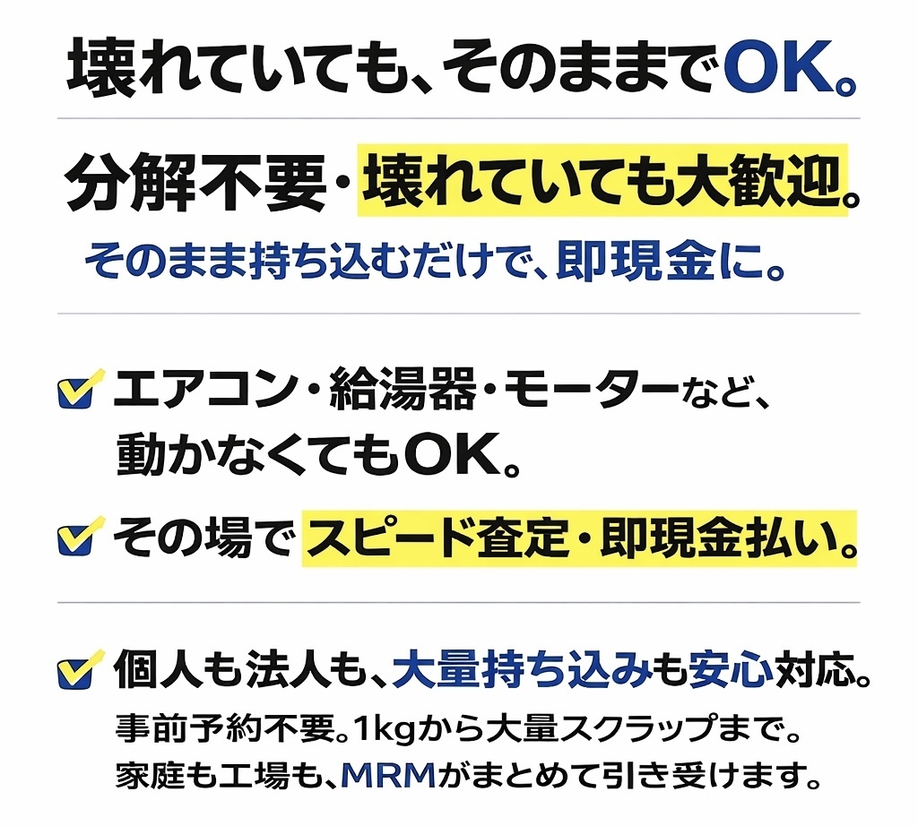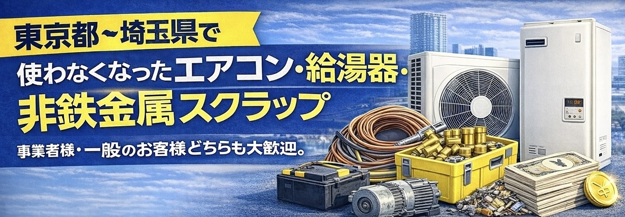 東京都・埼玉県で使わなくなったエアコン、給湯器、非鉄金属スクラップ即日現金買取。